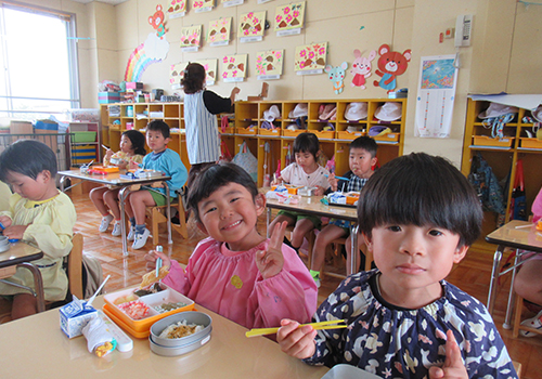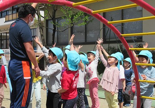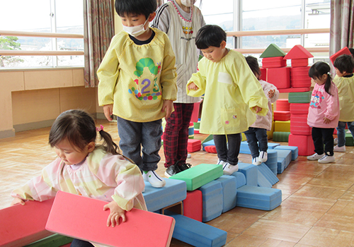 幼児の生活は遊び中心です。さまざまな活動を通して、身体諸機能の発達を促します。