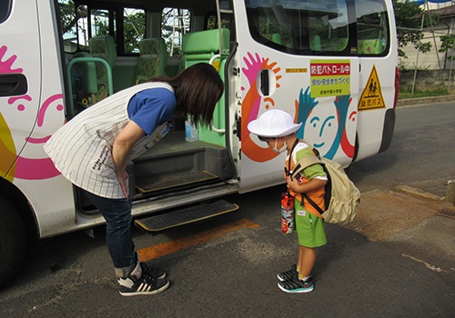 お家の方と一緒に、先生と一緒に、園バスで。